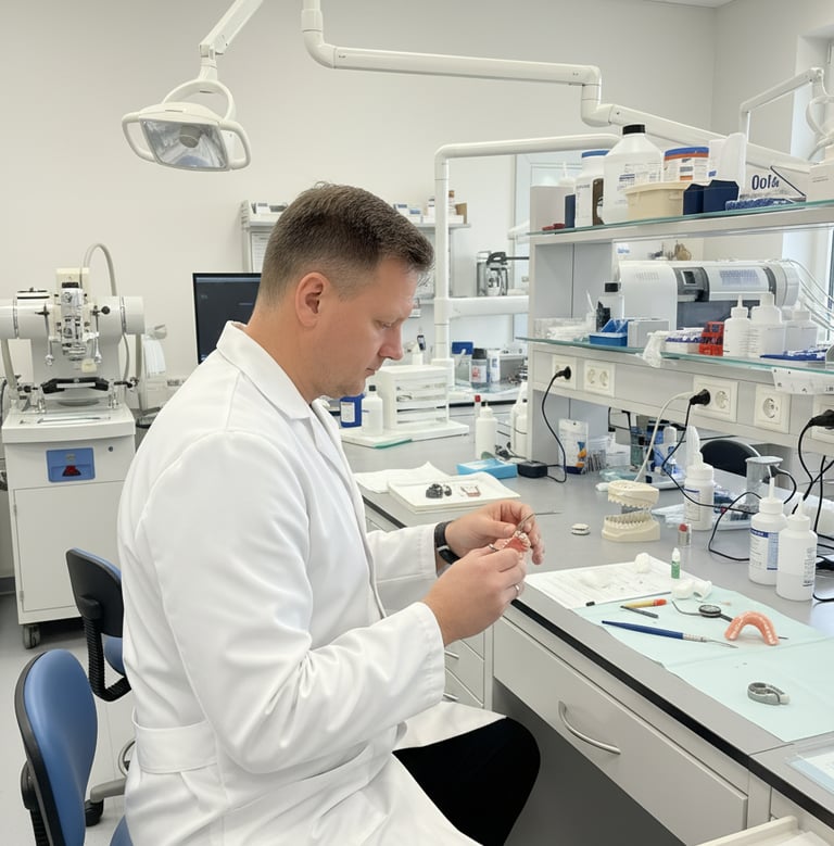 Gulyás Gyula vagyok, fogtechnikus mester. Több mint 30 éve foglalkozom kivehető fogpótlások készítésével.